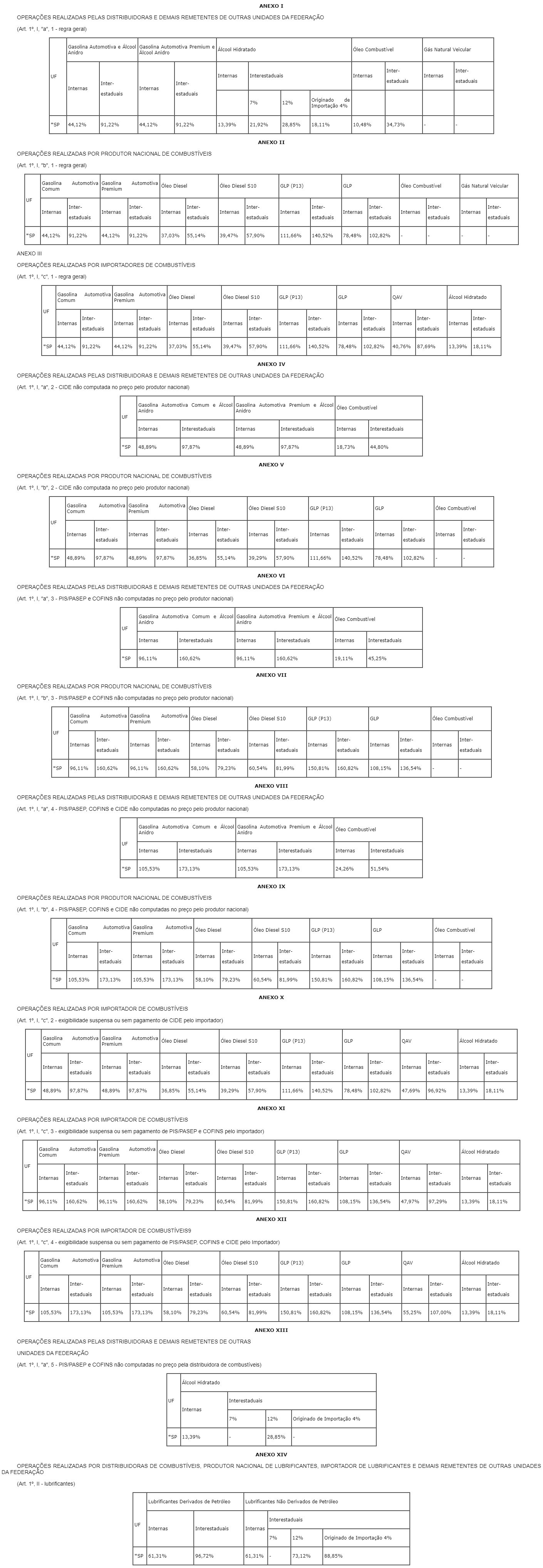 Altera as Tabelas I, II, III, IV, V, VI, VII, VIII, IX, X, XI, XII, XIII e XIV anexas ao Ato Cotepe/ICMS 42/13, que divulga as margens de valor agregado a que se refere à cláusula oitava do Convênio ICMS 110/07, que dispõe sobre o regime de substituição tributária nas operações com combustíveis e lubrificantes, derivados ou não de petróleo, e com outros produtos.
