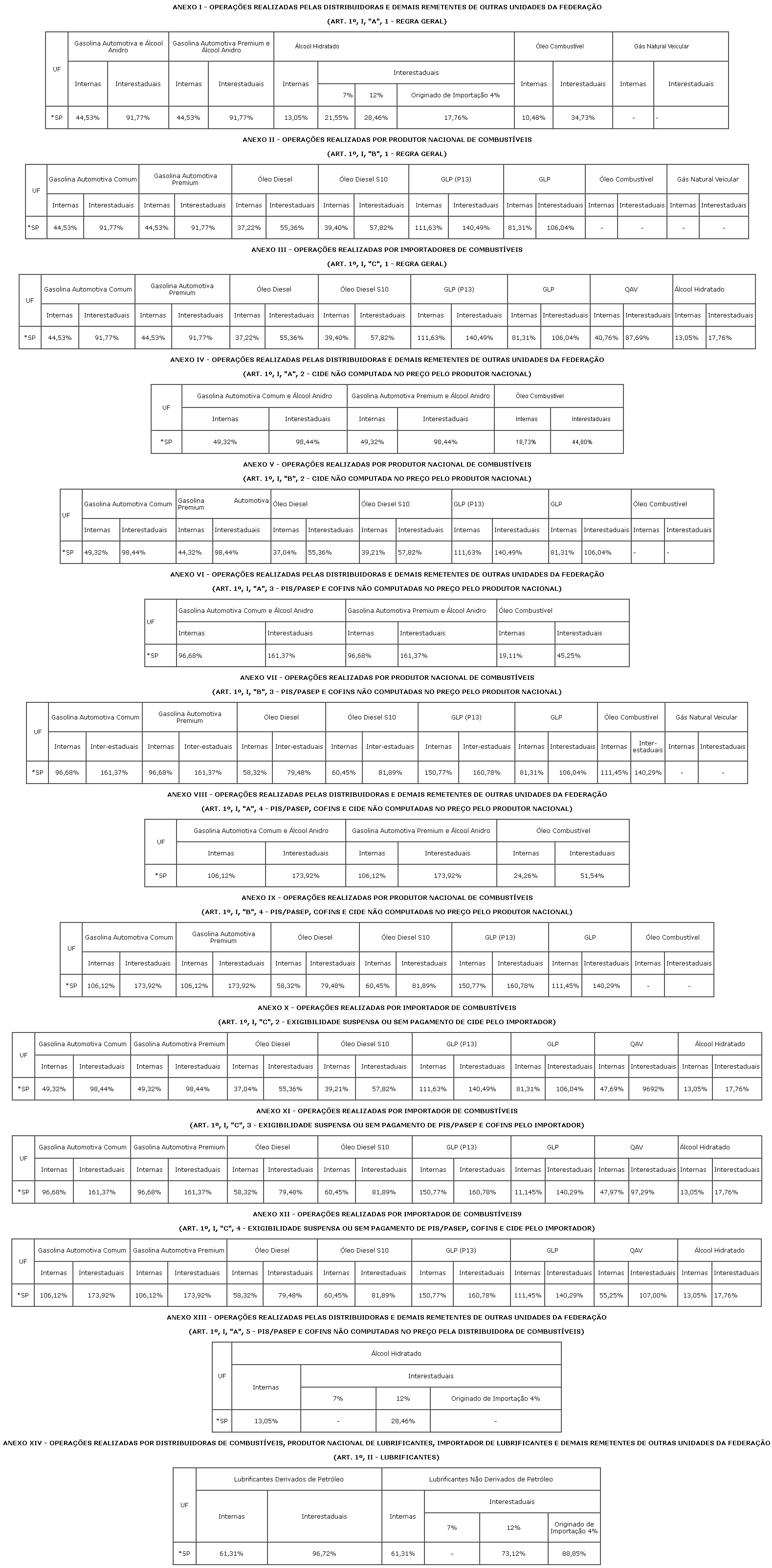 Altera as Tabelas I, II, III, IV, V, VI, VII, VIII, IX, X, XI, XII, XIII e XIV anexas ao Ato Cotepe/ICMS 42/13, que divulga as margens de valor agregado a que se refere à cláusula oitava do Convênio ICMS 110/07, que dispõe sobre o regime de substituição tributária nas operações com combustíveis e lubrificantes, derivados ou não de petróleo, e com outros produtos.